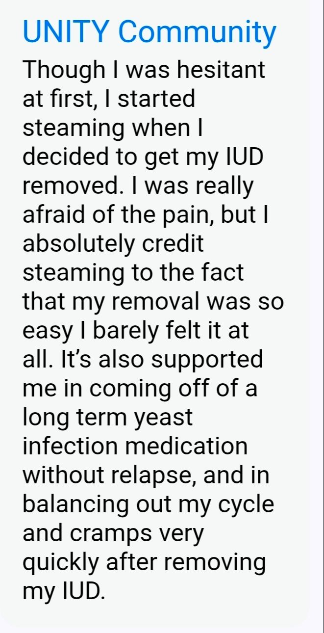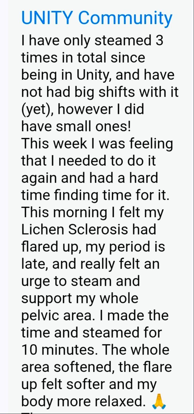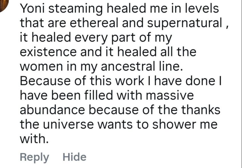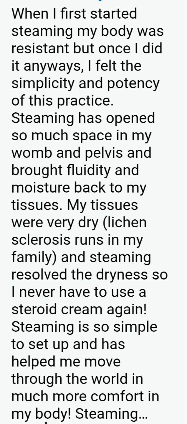 Working with a woman who had experienced childhood sexual trauma, felt disconnected from her body, didn’t enjoy sex, experiencing a life changing breakthrough because you led her to the art of yoni steaming and it allowed her to soften enough to finally receive deeper healing that wasn't accessible before —